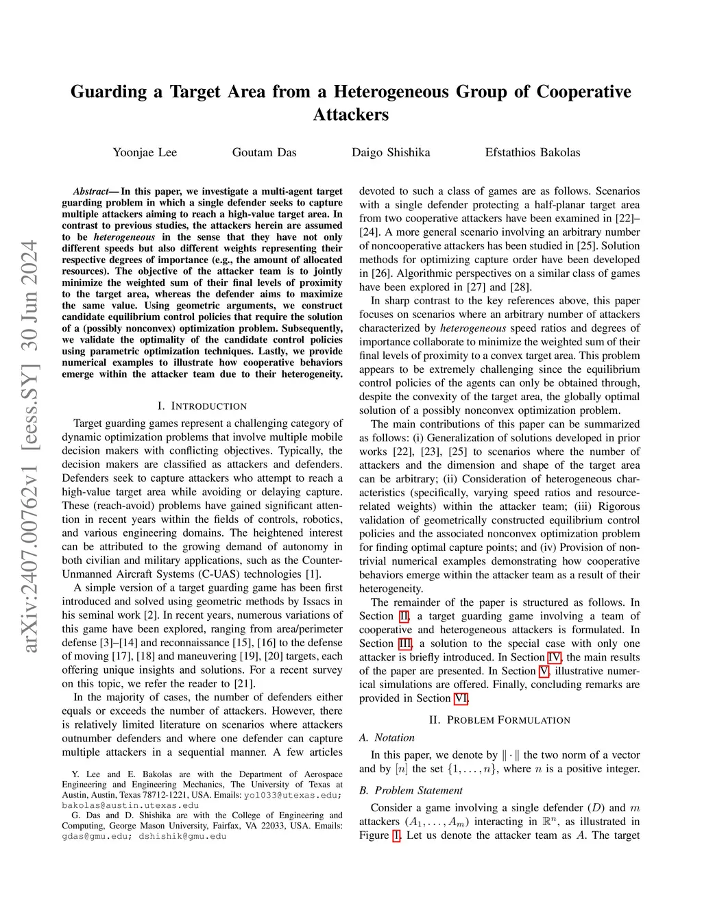 Guarding a Target Area from a Heterogeneous Group of Cooperative