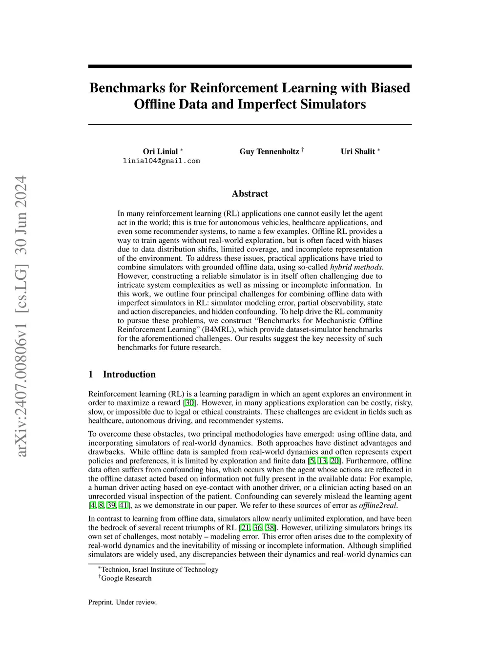In many reinforcement learning (RL) applications one cannot easily let the agent act in the world; this is true for autonomous vehicles, healthcare applications, and even some recommender systems, to name a few examples. Offline RL provides a way to train agents without real-world exploration, but is often faced with biases due to data distribution shifts, limited coverage, and incomplete representation of the environment. To address these issues, practical applications have tried to combine simulators with grounded offline data, using so-called hybrid methods. However, constructing a reliable simulator is in itself often challenging due to intricate system complexities as well as missing or incomplete information. In this work, we outline four principal challenges for combining offline data with imperfect simulators in RL: simulator modeling error, partial observability, state and action discrepancies, and hidden confounding. To help drive the RL community to pursue these problems, we construct ``Benchmarks for Mechanistic Offline Reinforcement Learning'' (B4MRL), which provide dataset-simulator benchmarks for the aforementioned challenges. Our results suggest the key necessity of such benchmarks for future research.
