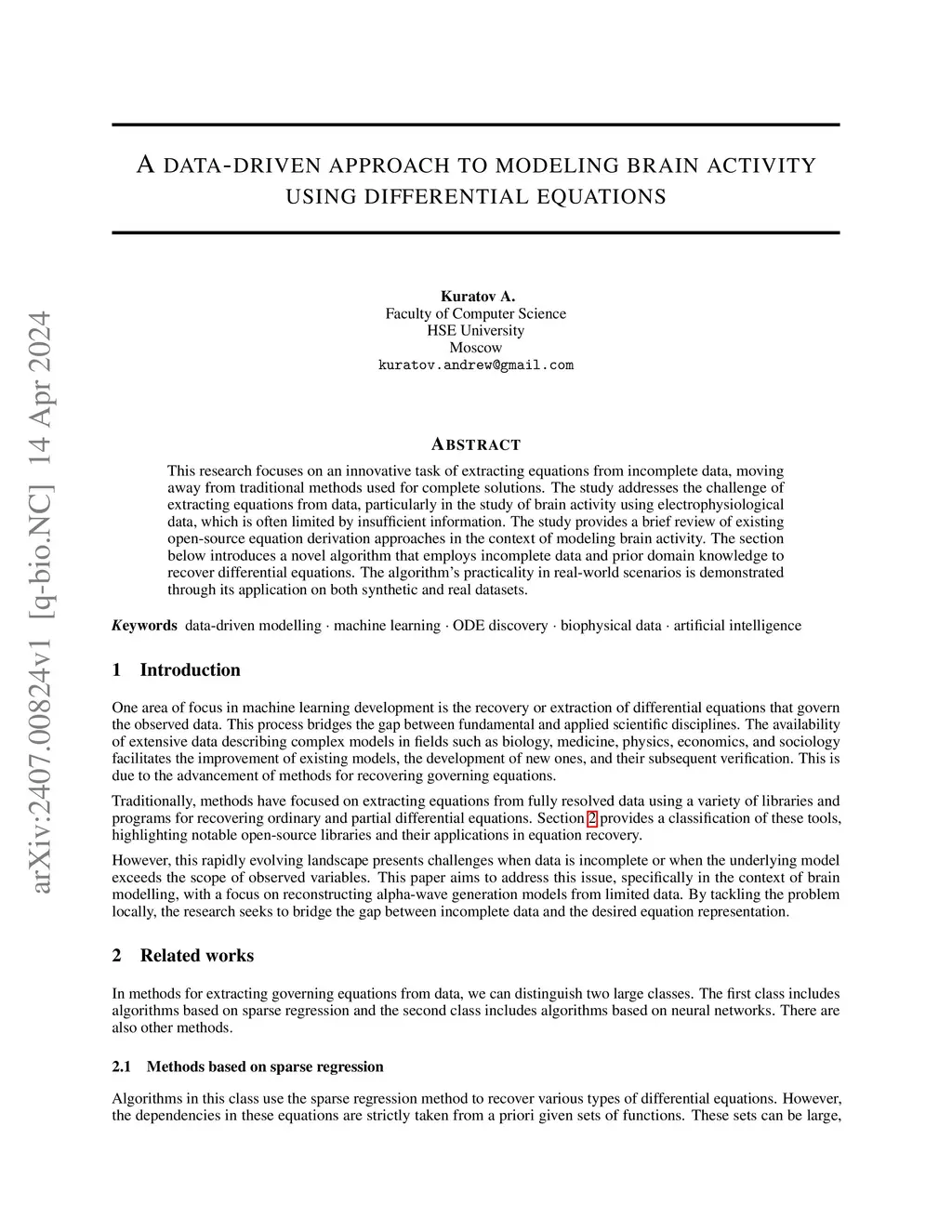 This research focuses on an innovative task of extracting equations from incomplete data, moving away from traditional methods used for complete solutions. The study addresses the challenge of extracting equations from data, particularly in the study of brain activity using electrophysiological data, which is often limited by insufficient information. The study provides a brief review of existing open-source equation derivation approaches in the context of modeling brain activity. The section below introduces a novel algorithm that employs incomplete data and prior domain knowledge to recover differential equations. The algorithm's practicality in real-world scenarios is demonstrated through its application on both synthetic and real datasets.
