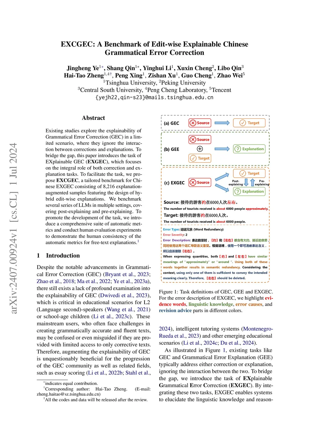 EXCGEC: A Benchmark for Edit-Wise Explainable Chinese Grammatical Error Correction