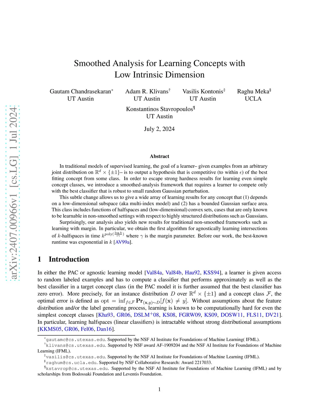 Smoothed Analysis for Learning Concepts with Low Intrinsic Dimension