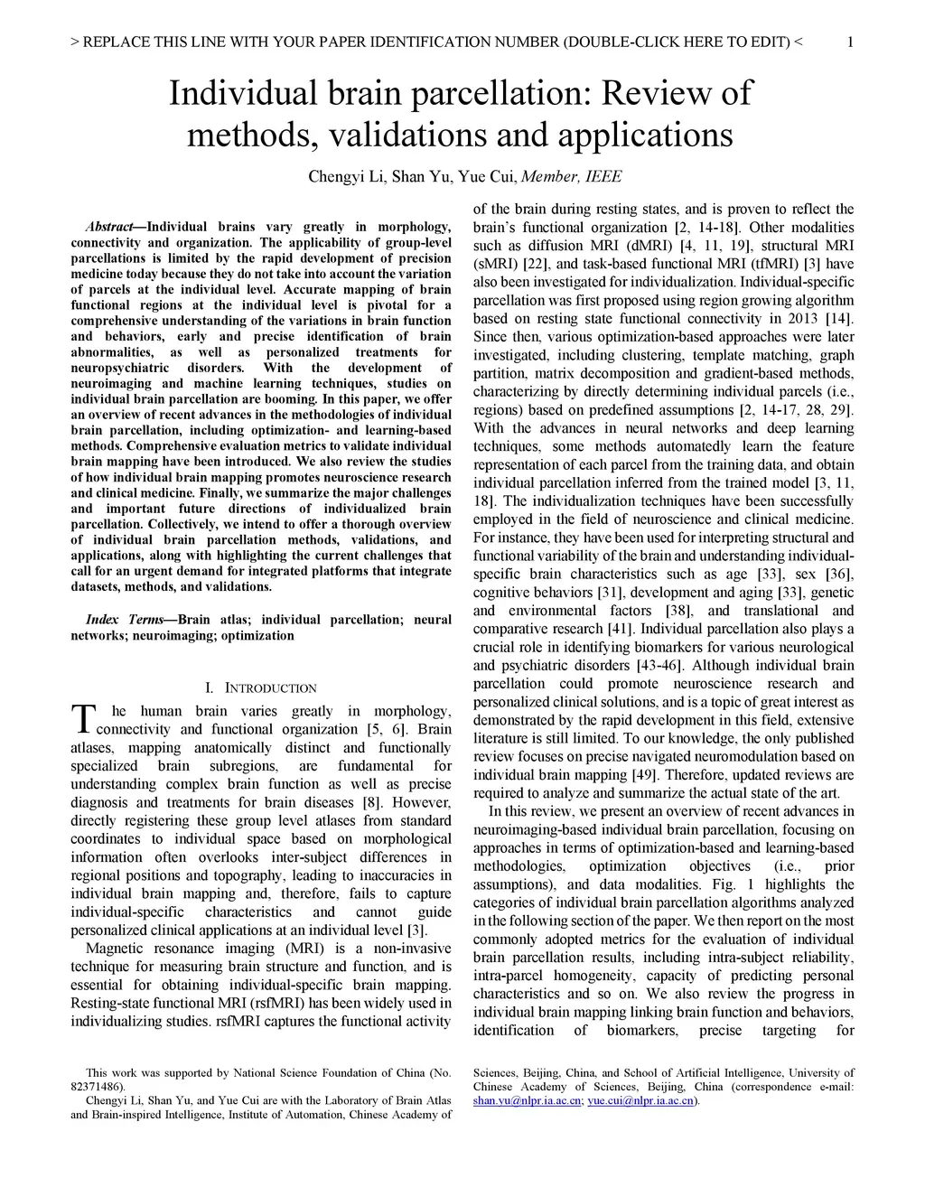 Individual brain parcellation: Review of methods, validations and