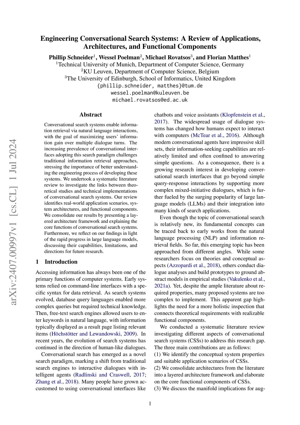 Engineering Conversational Search Systems: A Review of Applications,
