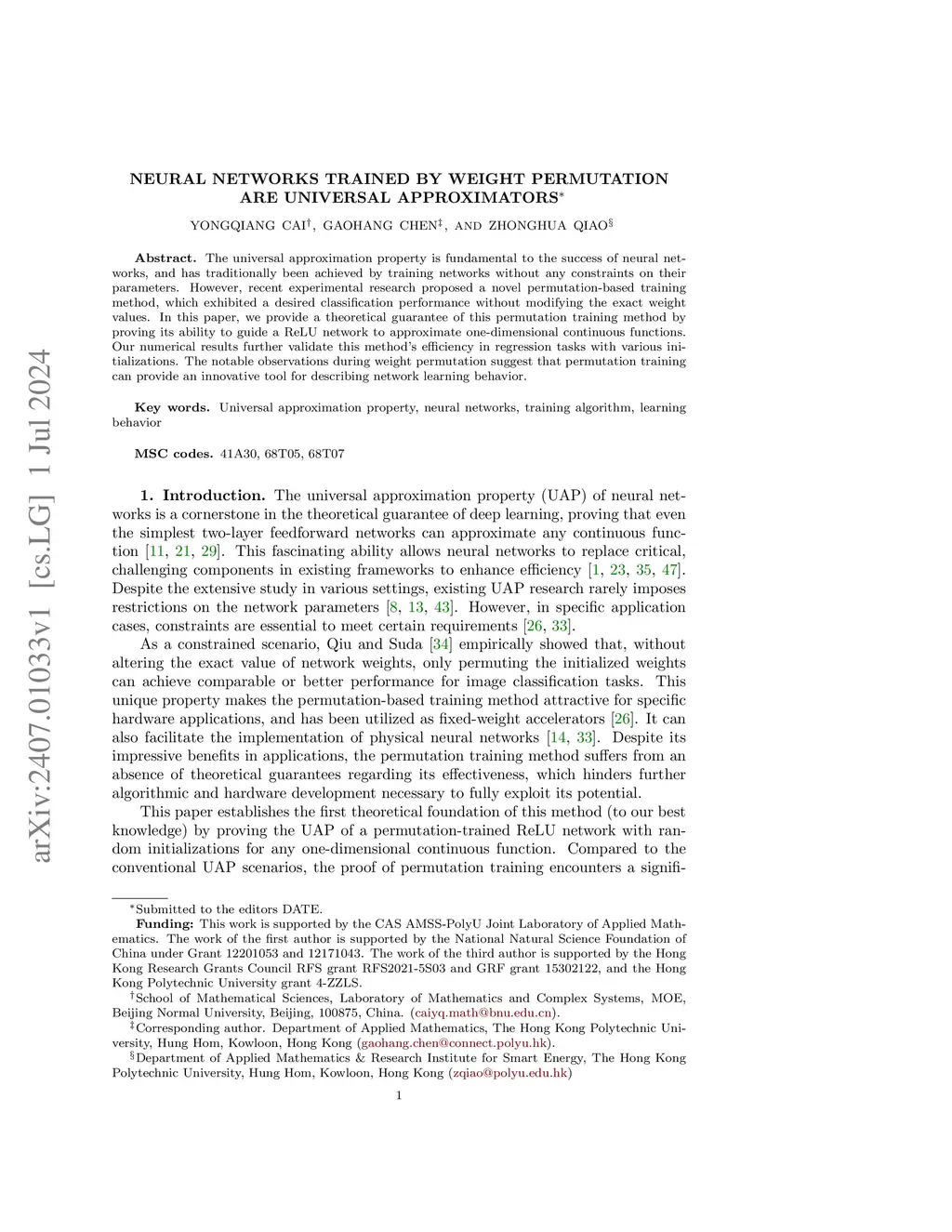Neural Networks Trained by Weight Permutation are Universal Approximators