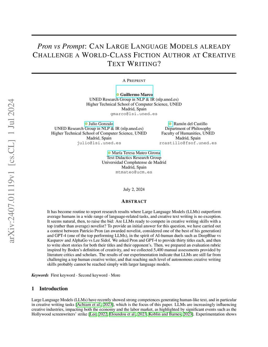 Pron vs Prompt: Can Large Language Models already Challenge a