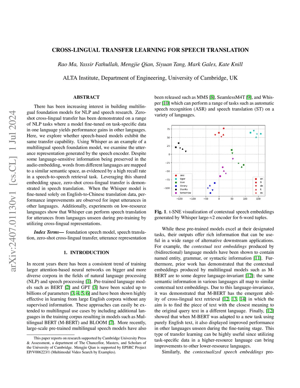 Cross-Lingual Transfer Learning for Speech Translation