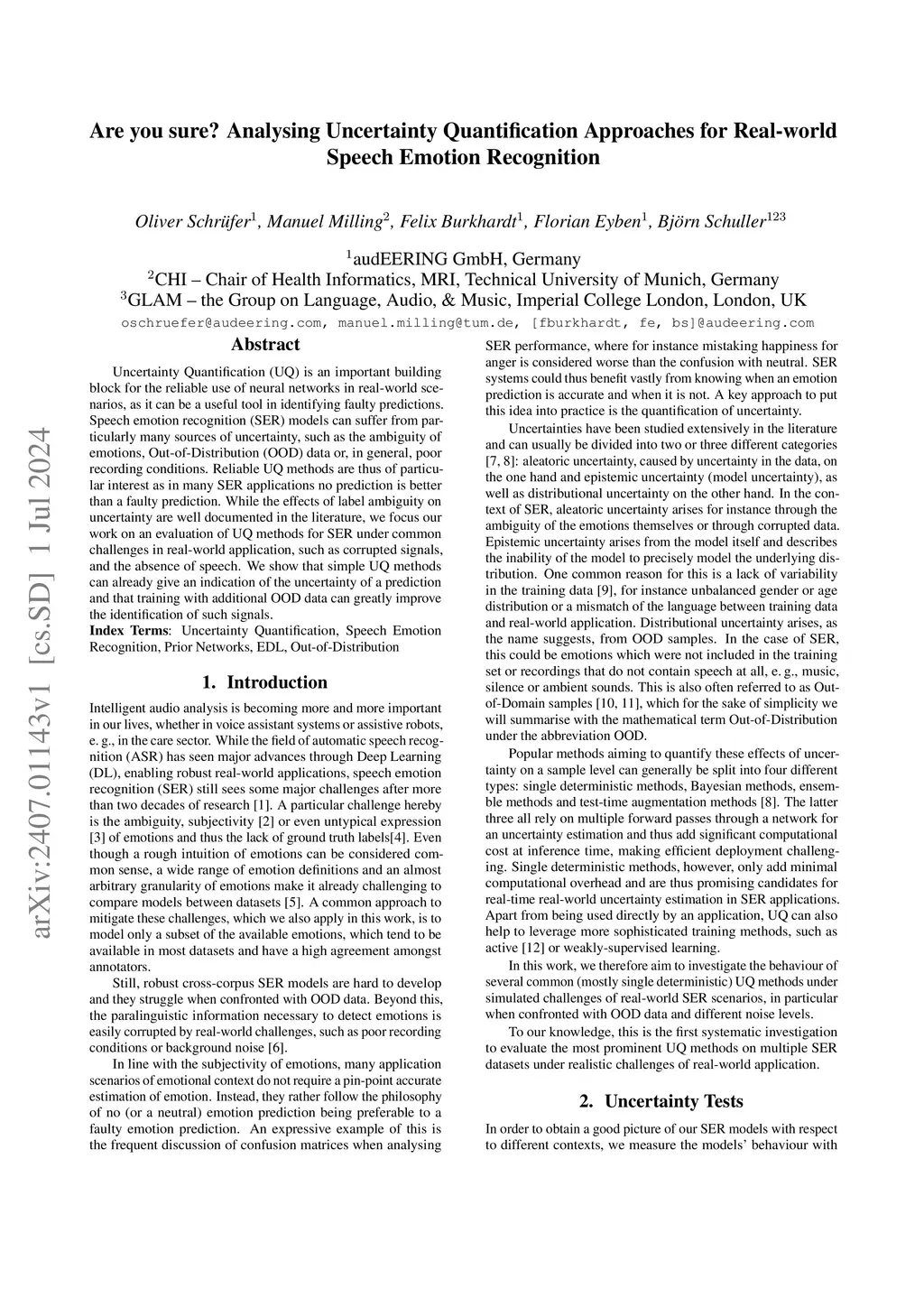 Uncertainty Quantification (UQ) is an important building block for the reliable use of neural networks in real-world scenarios, as it can be a useful tool in identifying faulty predictions. Speech emotion recognition (SER) models can suffer from particularly many sources of uncertainty, such as the ambiguity of emotions, Out-of-Distribution (OOD) data or, in general, poor recording conditions. Reliable UQ methods are thus of particular interest as in many SER applications no prediction is better than a faulty prediction. While the effects of label ambiguity on uncertainty are well documented in the literature, we focus our work on an evaluation of UQ methods for SER under common challenges in real-world application, such as corrupted signals, and the absence of speech. We show that simple UQ methods can already give an indication of the uncertainty of a prediction and that training with additional OOD data can greatly improve the identification of such signals.