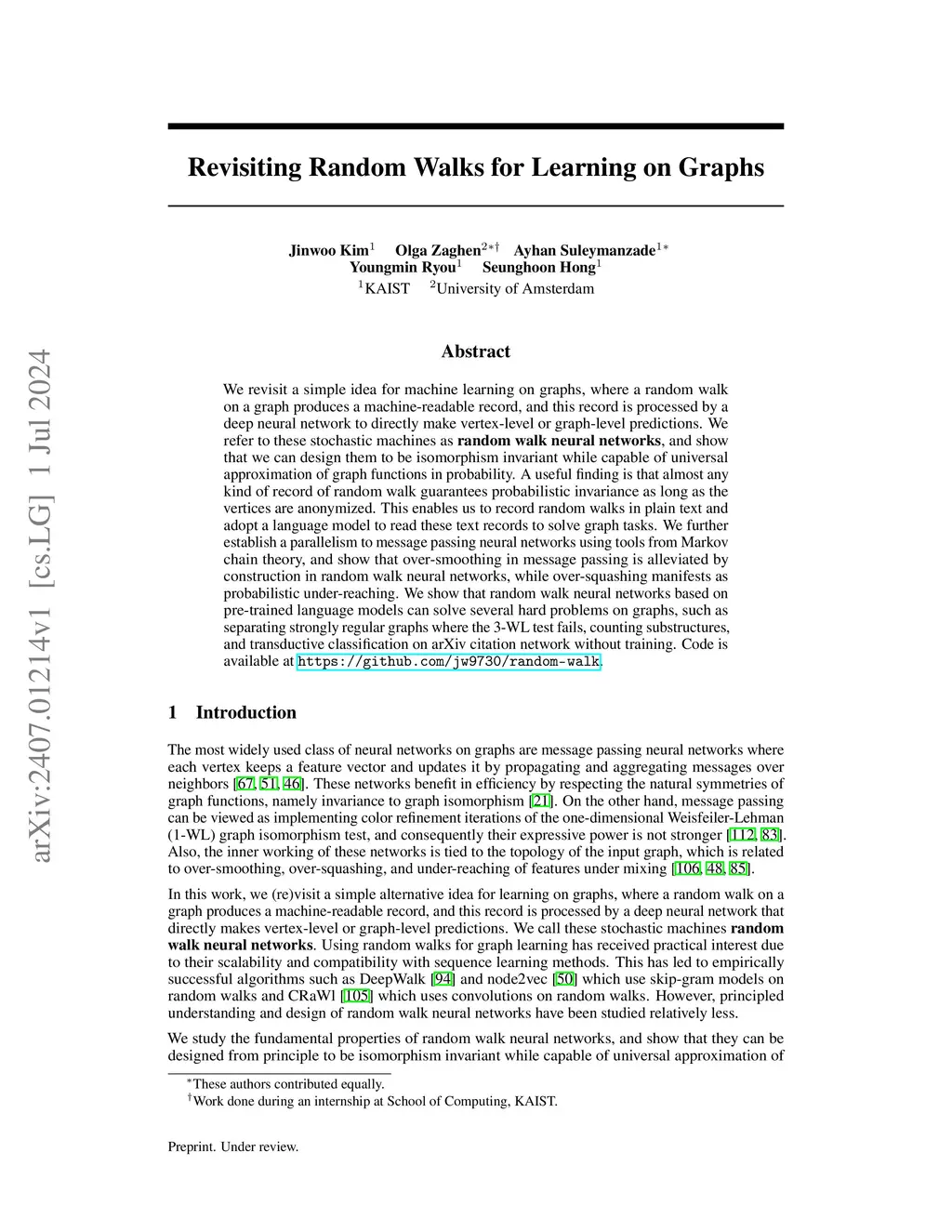 Revisiting Random Walks for Learning on Graphs