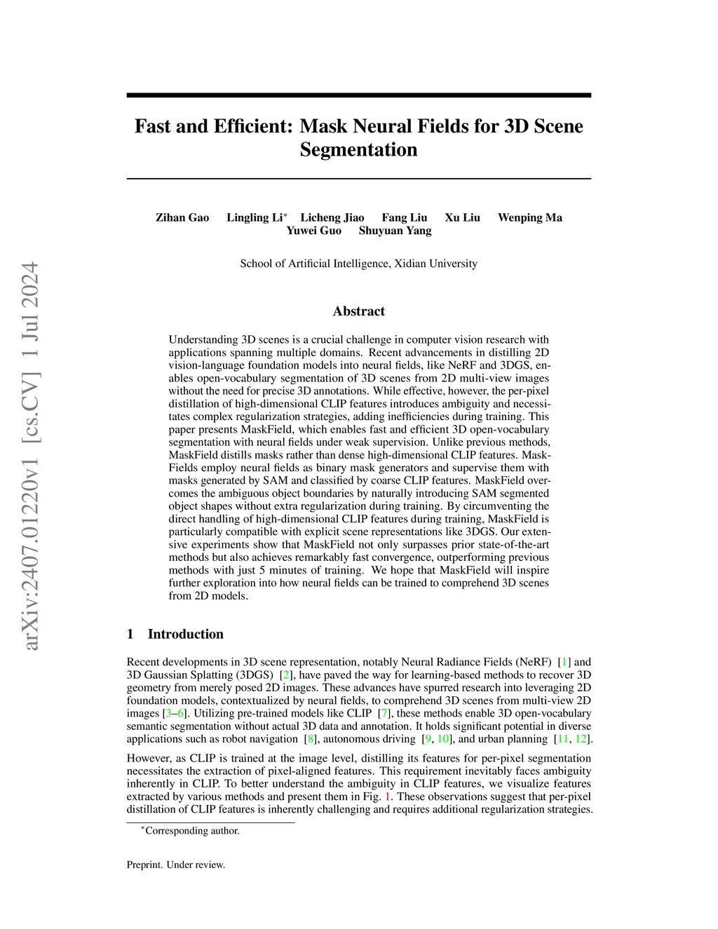 Fast and Efficient: Mask Neural Fields for 3D Scene Segmentation