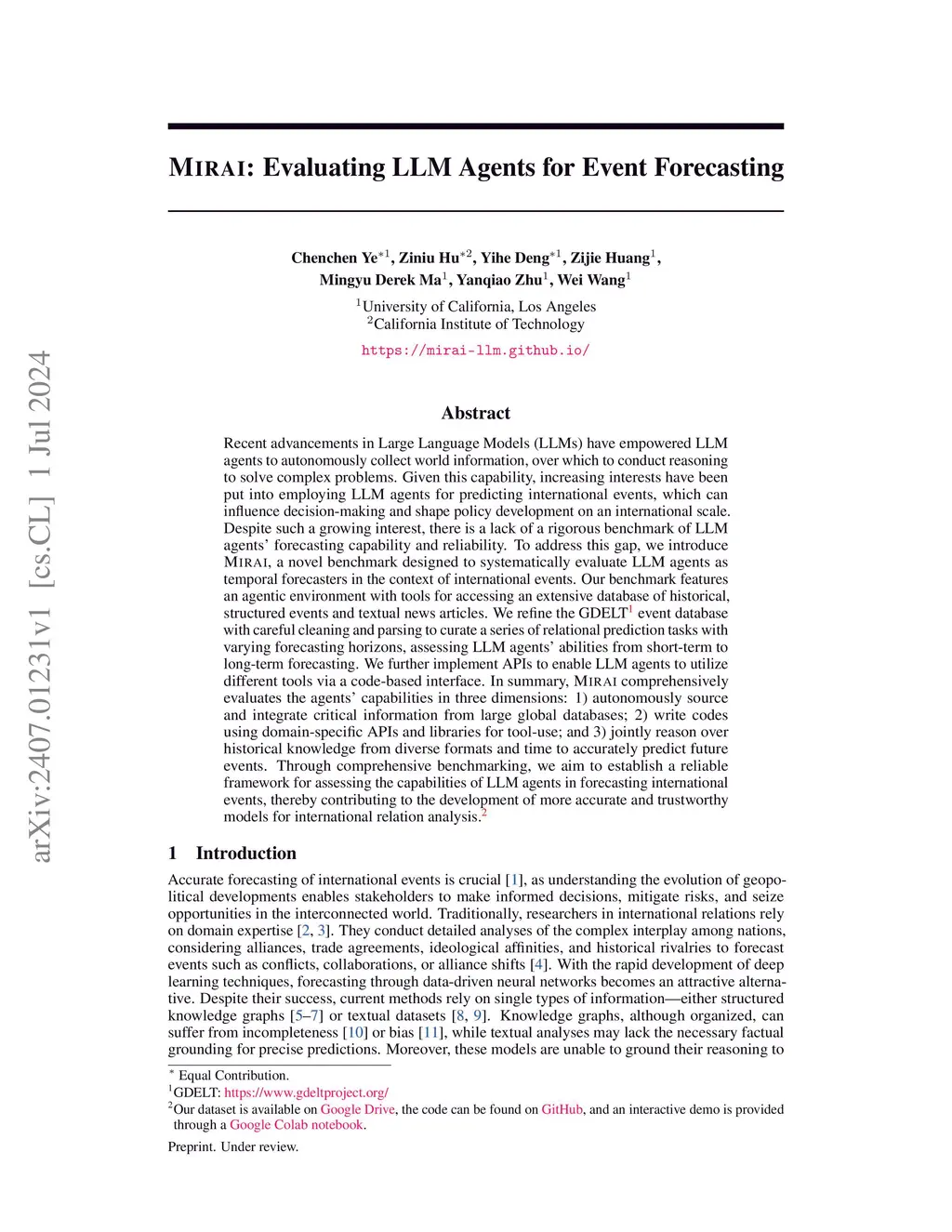 MIRAI: Evaluating LLM Agents for Event Forecasting