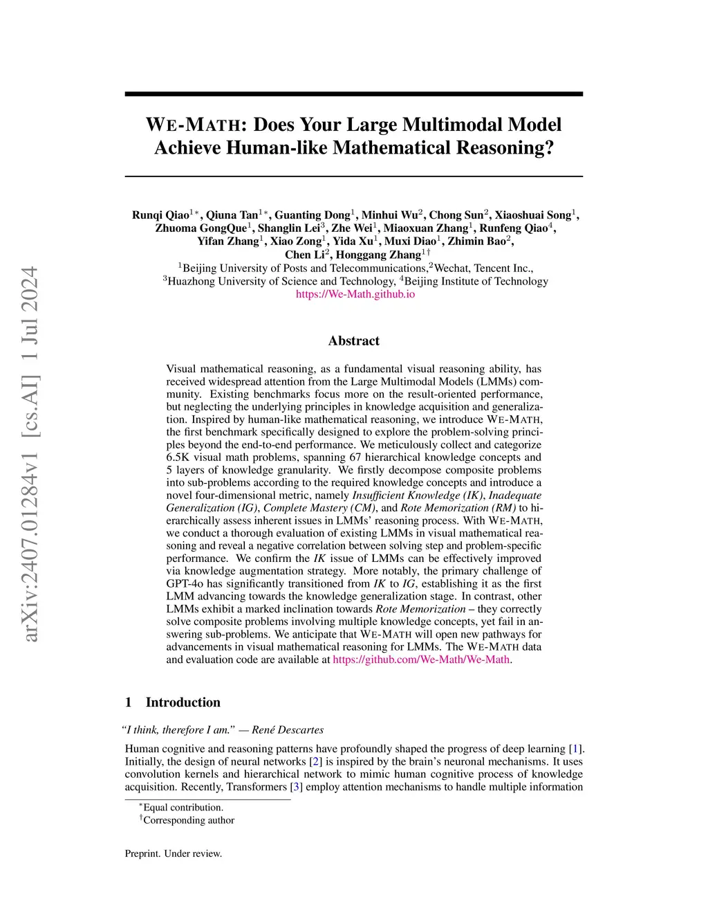 We-Math: Does Your Large Multimodal Model Achieve Human-like