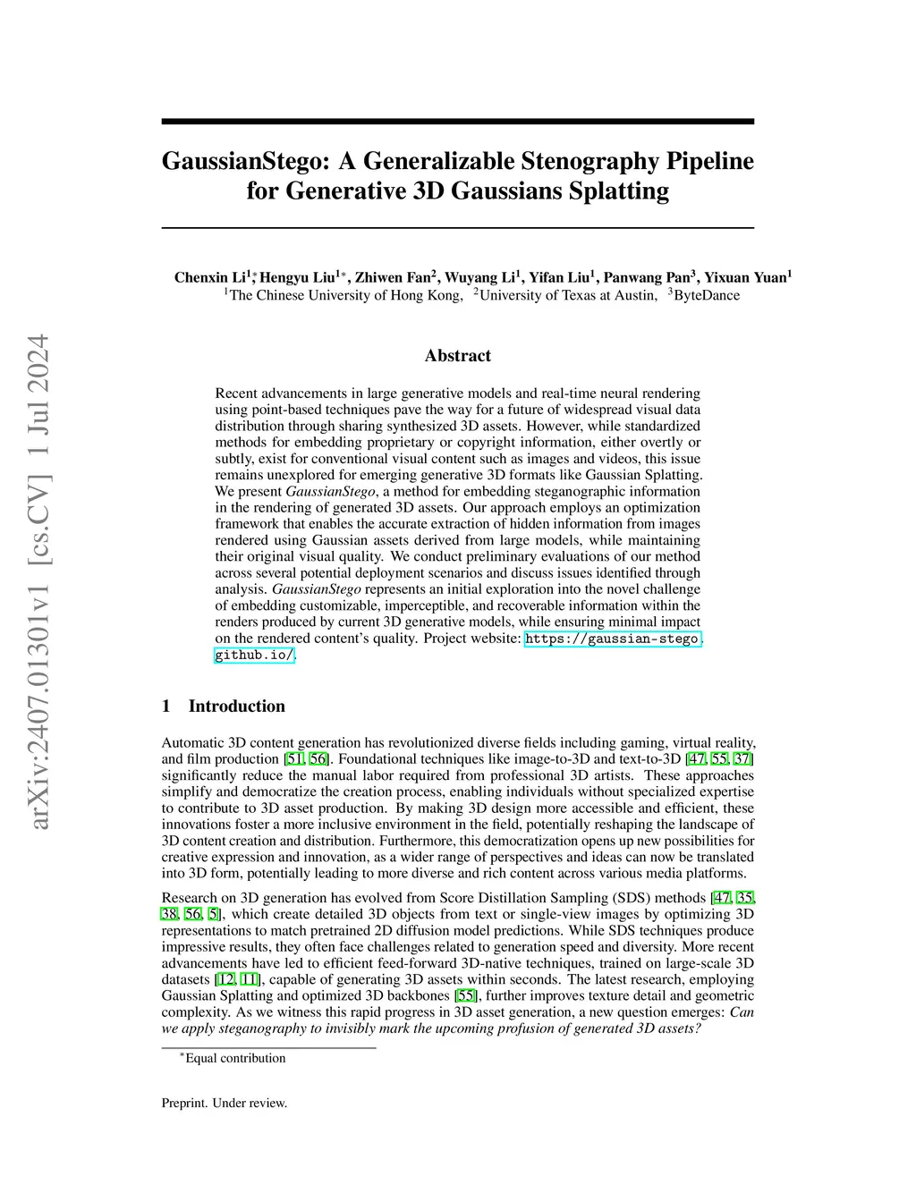 GaussianStego: A Generalizable Stenography Pipeline for Generative 3D