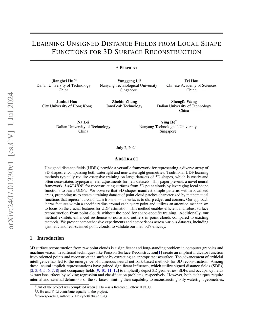 A Lightweight UDF Learning Framework for 3D Reconstruction Based on Local Shape Functions