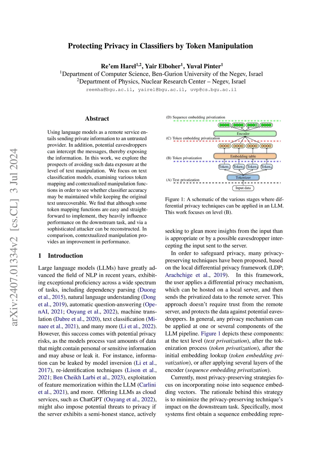 Protecting Privacy in Classifiers by Token Manipulation