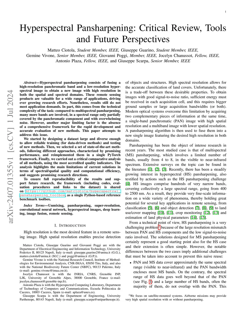 Hyperspectral Pansharpening: Critical Review, Tools and Future