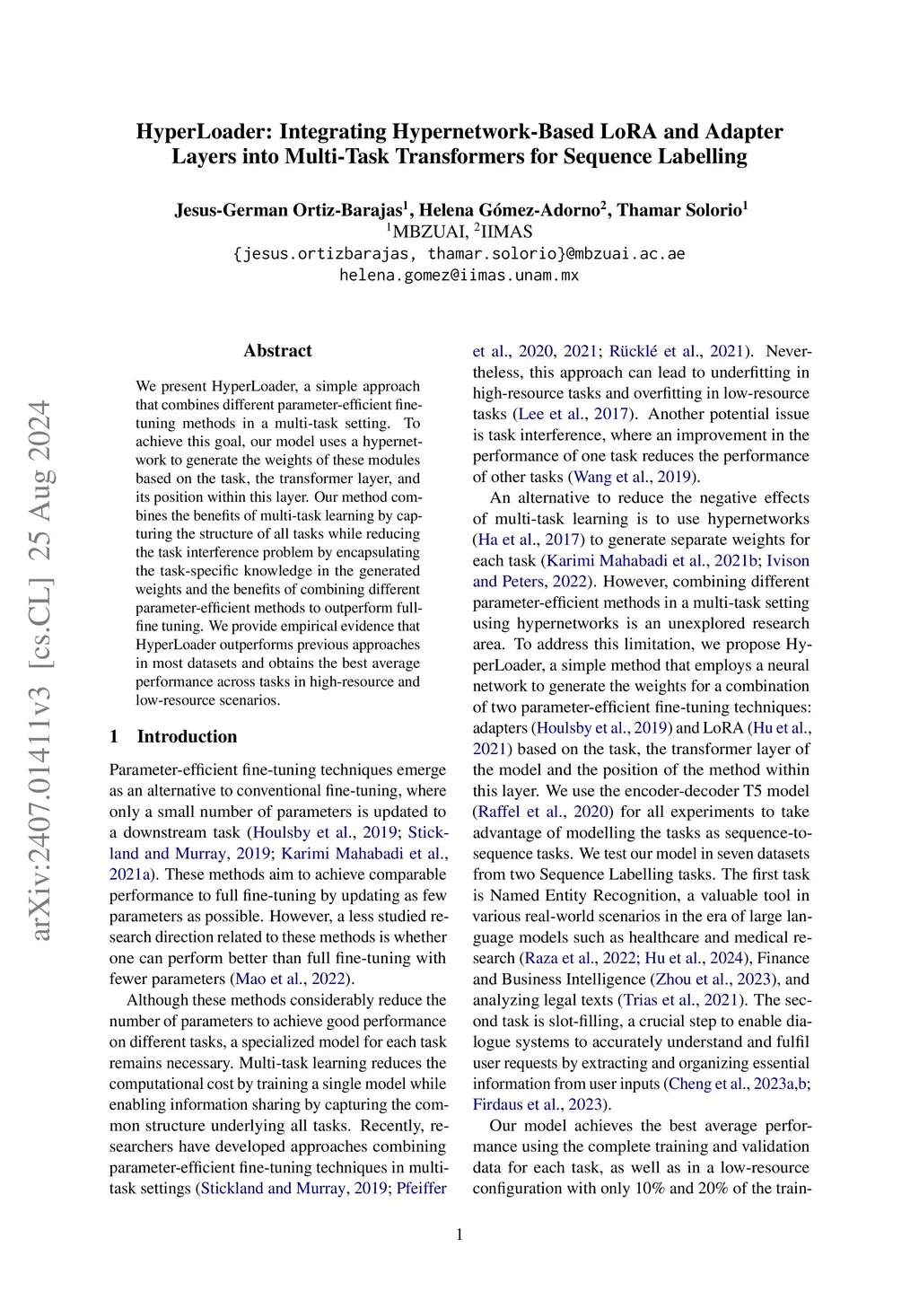 HyperLoader: Integrating Hypernetwork-Based LoRA and Adapter Layers into