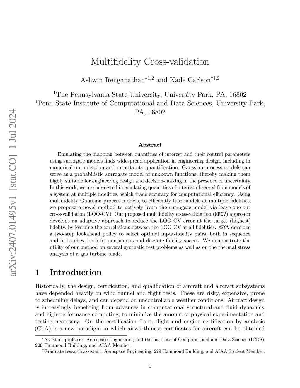 Emulating the mapping between quantities of interest and their control parameters using surrogate models finds widespread application in engineering design, including in numerical optimization and uncertainty quantification. Gaussian process models can serve as a probabilistic surrogate model of unknown functions, thereby making them highly suitable for engineering design and decision-making in the presence of uncertainty. In this work, we are interested in emulating quantities of interest observed from models of a system at multiple fidelities, which trade accuracy for computational efficiency. Using multifidelity Gaussian process models, to efficiently fuse models at multiple fidelities, we propose a novel method to actively learn the surrogate model via leave-one-out cross-validation (LOO-CV). Our proposed multifidelity cross-validation (\texttt{MFCV}) approach develops an adaptive approach to reduce the LOO-CV error at the target (highest) fidelity, by learning the correlations between the LOO-CV at all fidelities. \texttt{MFCV} develops a two-step lookahead policy to select optimal input-fidelity pairs, both in sequence and in batches, both for continuous and discrete fidelity spaces. We demonstrate the utility of our method on several synthetic test problems as well as on the thermal stress analysis of a gas turbine blade.