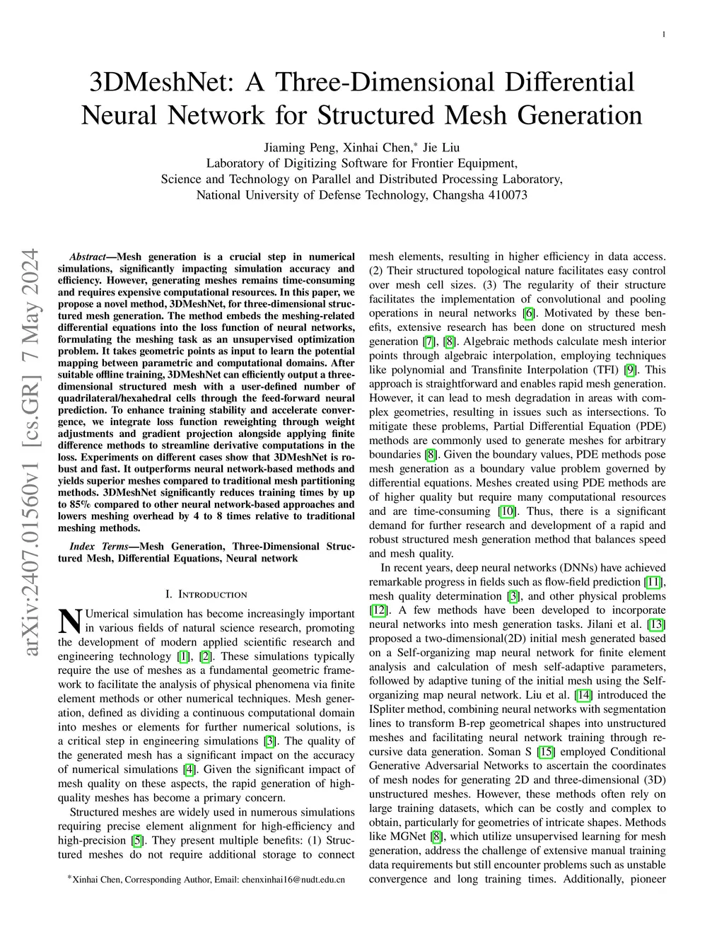 3DMeshNet: A Three-Dimensional Differential Neural Network for