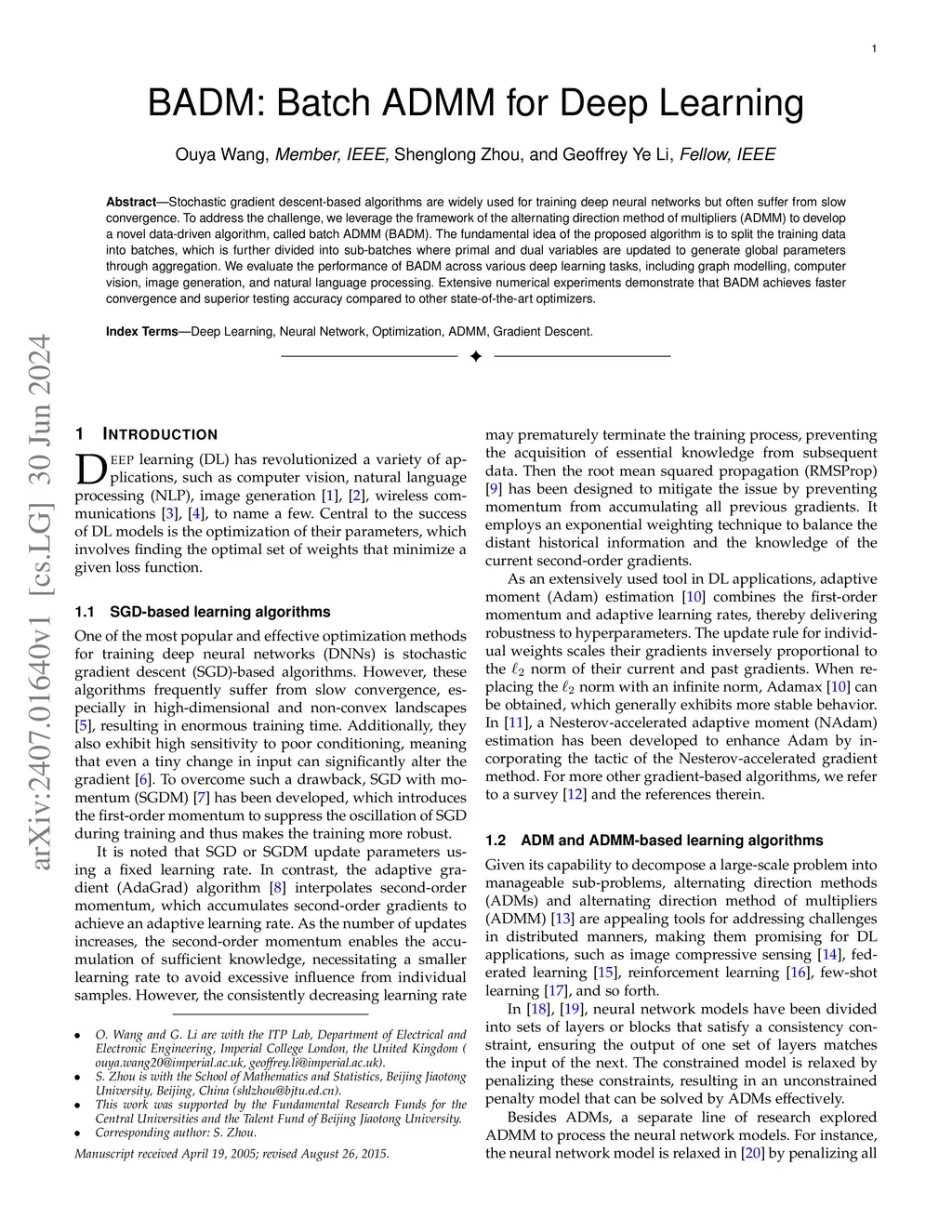 BADM: Batch ADMM for Deep Learning