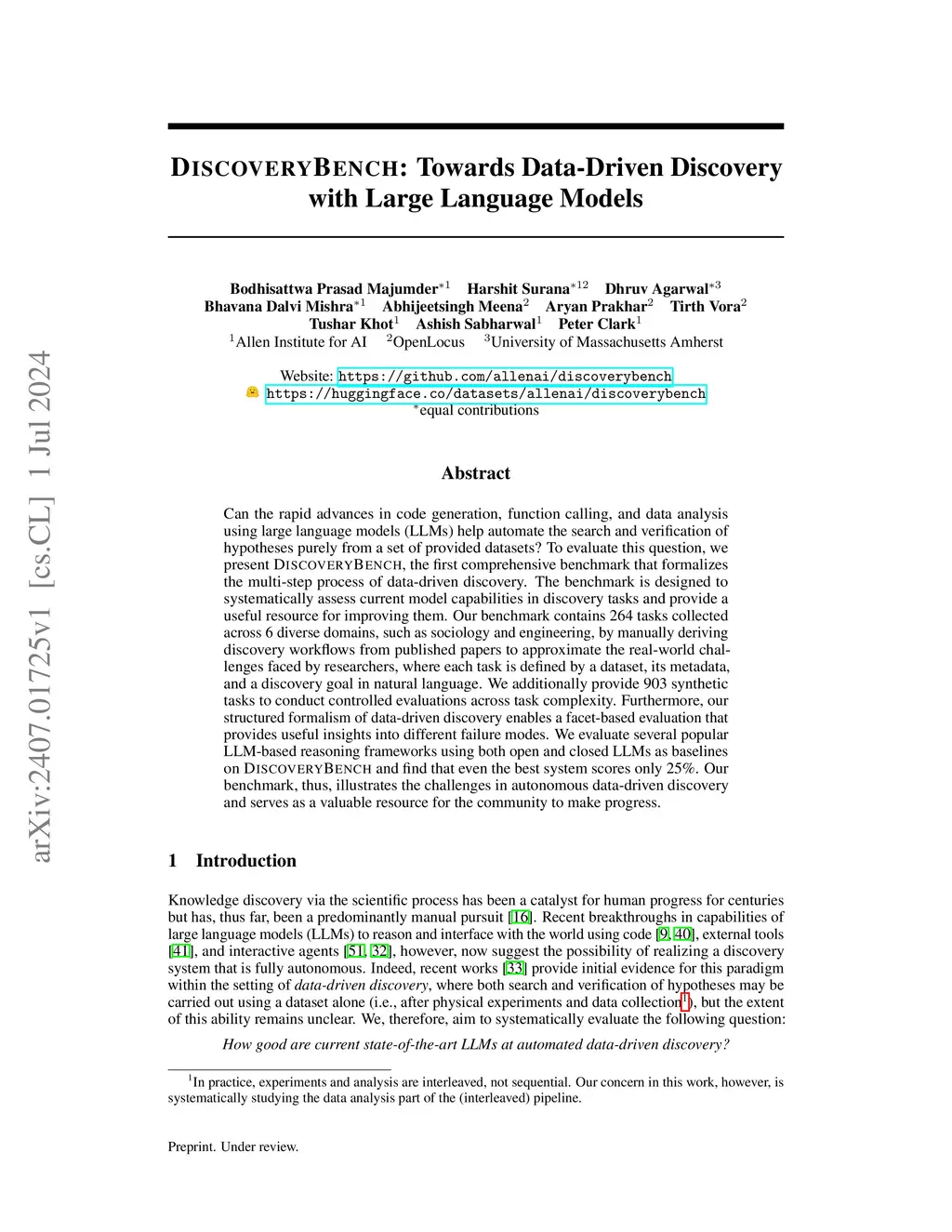 DiscoveryBench: Towards Data-Driven Discovery with Large Language Models
