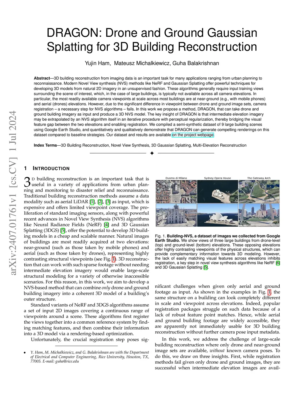 DRAGON: Drone and Ground Gaussian Splatting for 3D Building