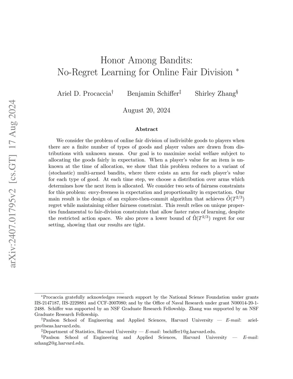 Honor Among Bandits: No-Regret Learning for Online Fair Division