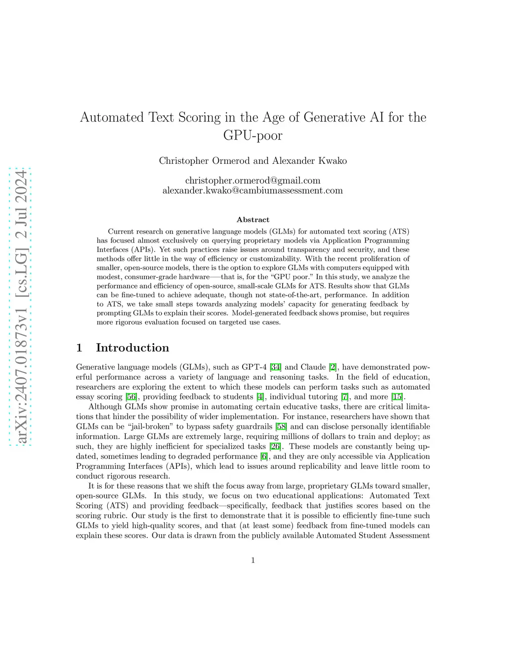 Automated Text Scoring in the Age of Generative AI for the GPU-poor