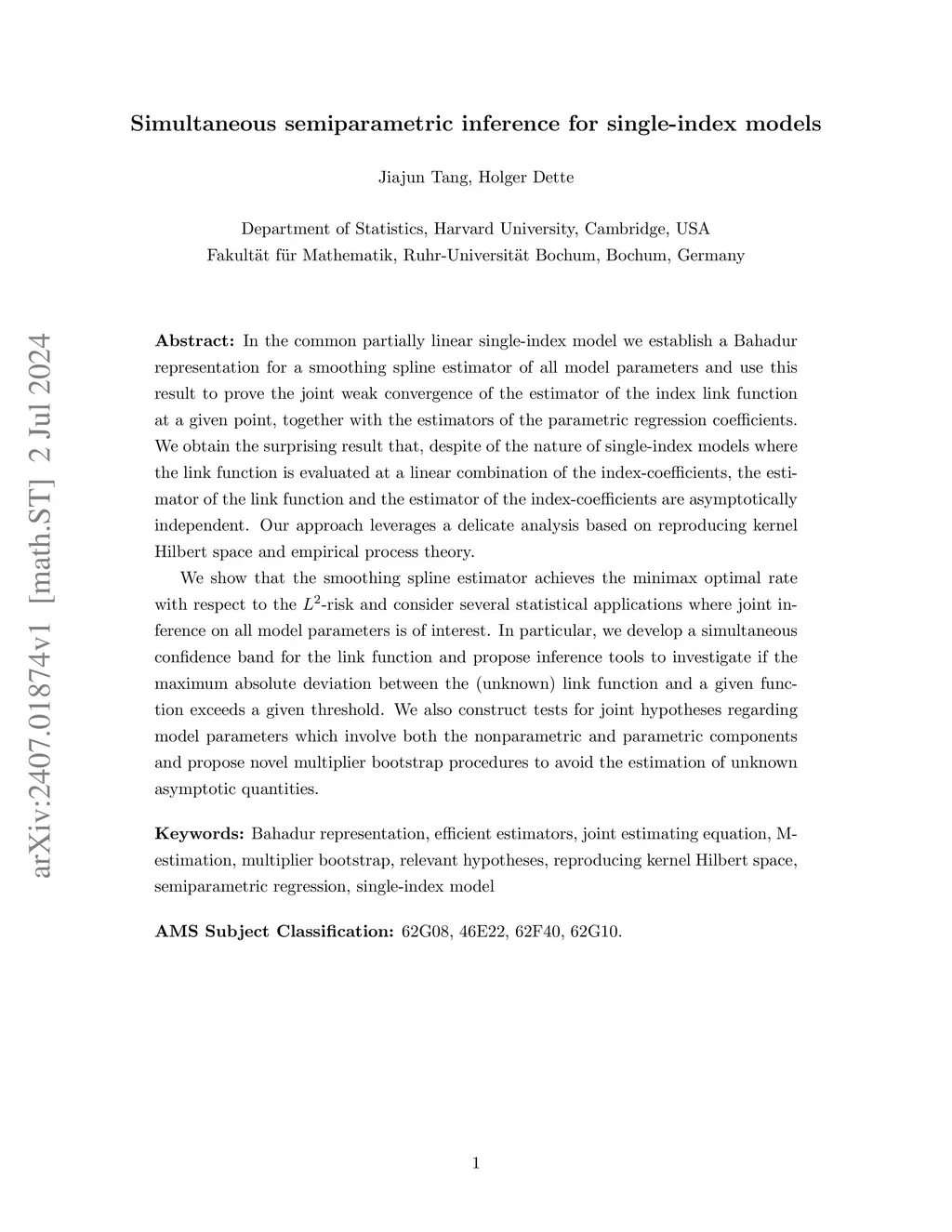Simultaneous semiparametric inference for single-index models