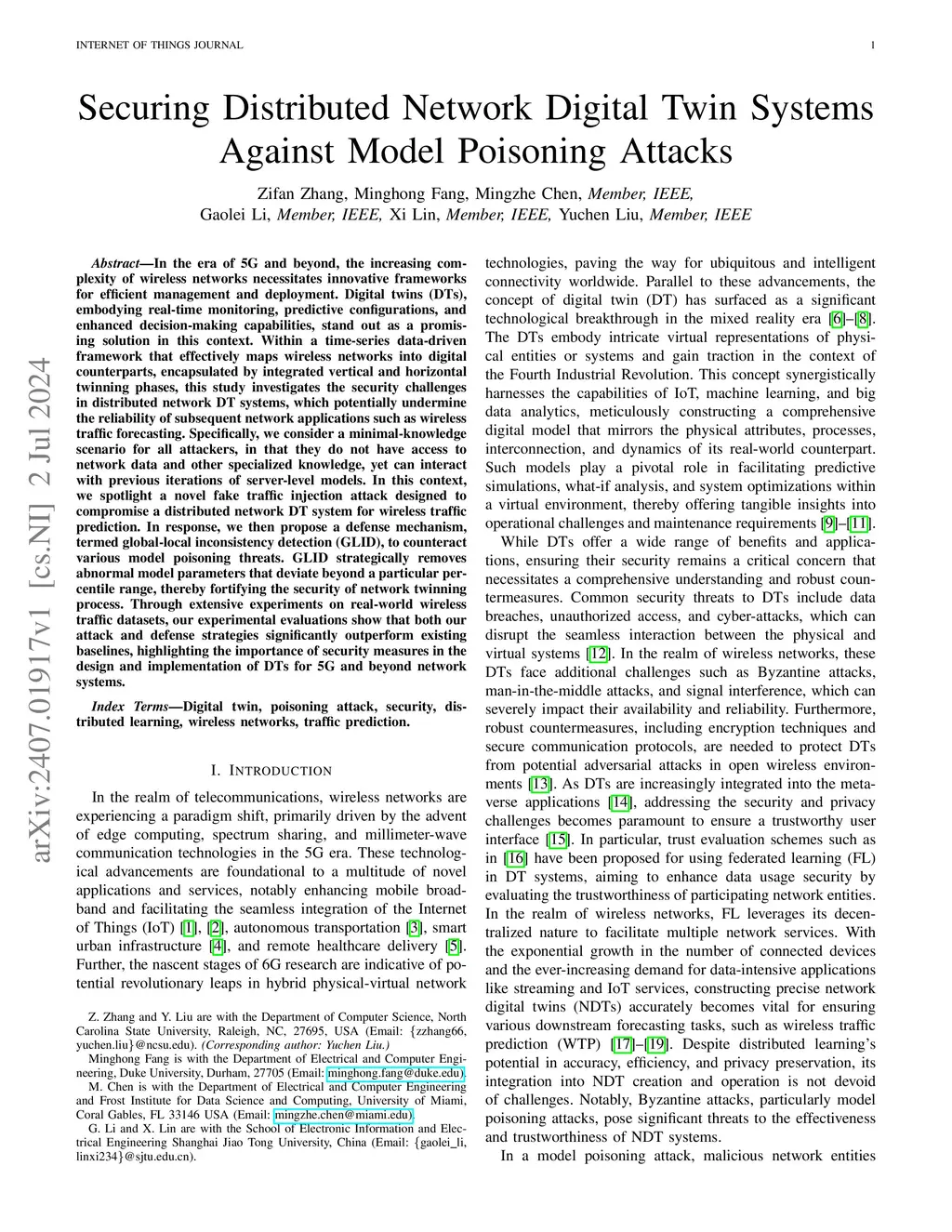 In the era of 5G and beyond, the increasing complexity of wireless networks necessitates innovative frameworks for efficient management and deployment. Digital twins (DTs), embodying real-time monitoring, predictive configurations, and enhanced decision-making capabilities, stand out as a promising solution in this context. Within a time-series data-driven framework that effectively maps wireless networks into digital counterparts, encapsulated by integrated vertical and horizontal twinning phases, this study investigates the security challenges in distributed network DT systems, which potentially undermine the reliability of subsequent network applications such as wireless traffic forecasting. Specifically, we consider a minimal-knowledge scenario for all attackers, in that they do not have access to network data and other specialized knowledge, yet can interact with previous iterations of server-level models. In this context, we spotlight a novel fake traffic injection attack designed to compromise a distributed network DT system for wireless traffic prediction. In response, we then propose a defense mechanism, termed global-local inconsistency detection (GLID), to counteract various model poisoning threats. GLID strategically removes abnormal model parameters that deviate beyond a particular percentile range, thereby fortifying the security of network twinning process. Through extensive experiments on real-world wireless traffic datasets, our experimental evaluations show that both our attack and defense strategies significantly outperform existing baselines, highlighting the importance of security measures in the design and implementation of DTs for 5G and beyond network systems.
