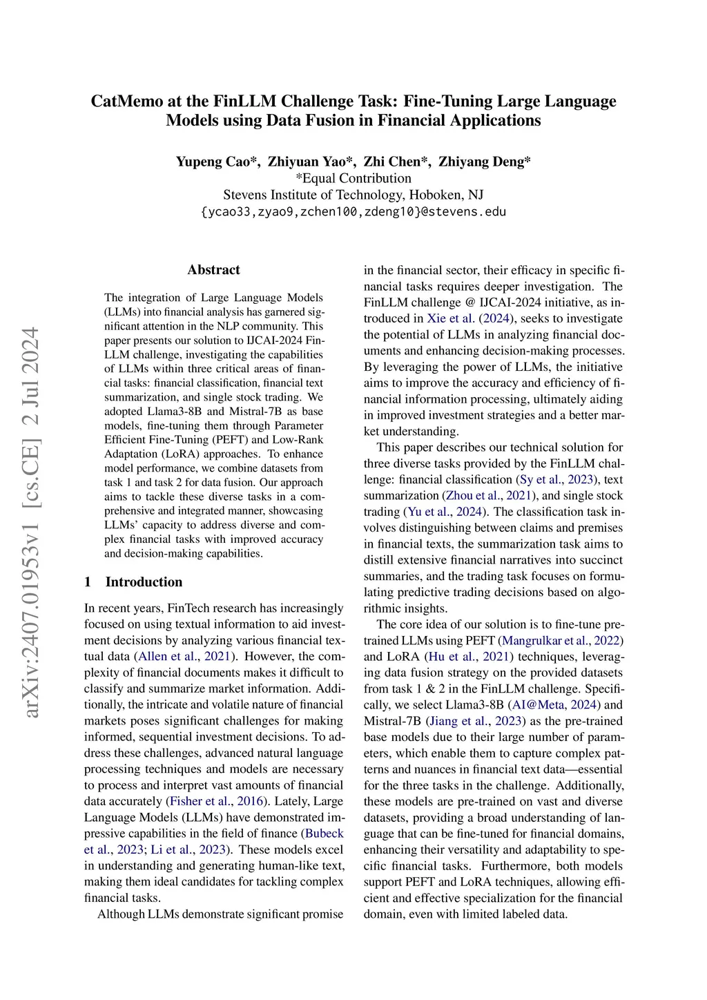 CatMemo at the FinLLM Challenge Task: Fine-Tuning Large Language Models