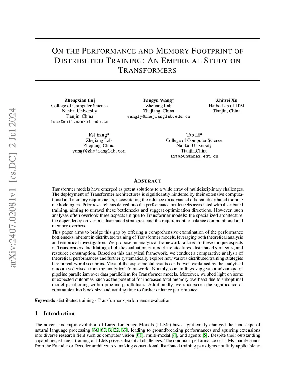 Transformer models have emerged as potent solutions to a wide array of multidisciplinary challenges. The deployment of Transformer architectures is significantly hindered by their extensive computational and memory requirements, necessitating the reliance on advanced efficient distributed training methodologies. Prior research has delved into the performance bottlenecks associated with distributed training, aiming to unravel these bottlenecks and suggest optimization directions. However, such analyses often overlook three aspects unique to Transformer models: the specialized architecture, the dependency on various distributed strategies, and the requirement to balance computational and memory overhead. This paper aims to bridge this gap by offering a comprehensive examination of the performance bottlenecks inherent in distributed training of Transformer models, leveraging both theoretical analysis and empirical investigation. We propose an analytical framework tailored to these unique aspects of Transformers, facilitating a holistic evaluation of model architectures, distributed strategies, and resource consumption. Based on this analytical framework, we conduct a comparative analysis of theoretical performances and further systematically explore how various distributed training strategies fare in real-world scenarios. Most of the experimental results can be well explained by the analytical outcomes derived from the analytical framework. Notably, our findings suggest an advantage of pipeline parallelism over data parallelism for Transformer models. Moreover, we shed light on some unexpected outcomes, such as the potential for increased total memory overhead due to suboptimal model partitioning within pipeline parallelism. Additionally, we underscore the significance of communication block size and waiting time to further enhance performance.
