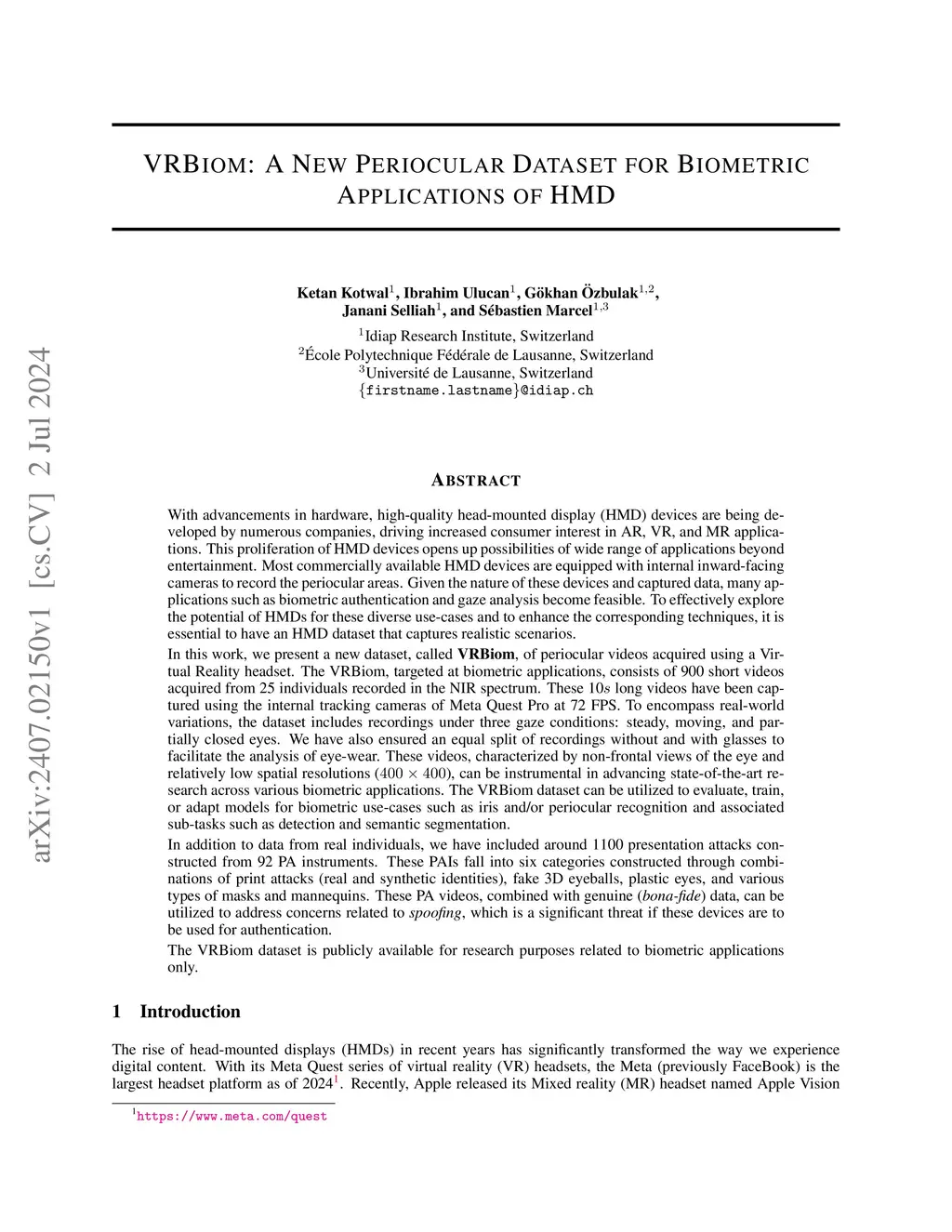 VRBiom: A New Periocular Dataset for Biometric Applications of HMD