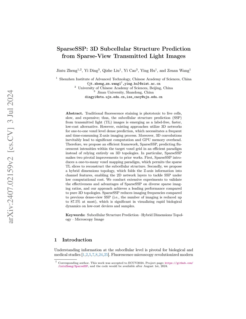 SparseSSP: 3D Subcellular Structure Prediction from Sparse-View