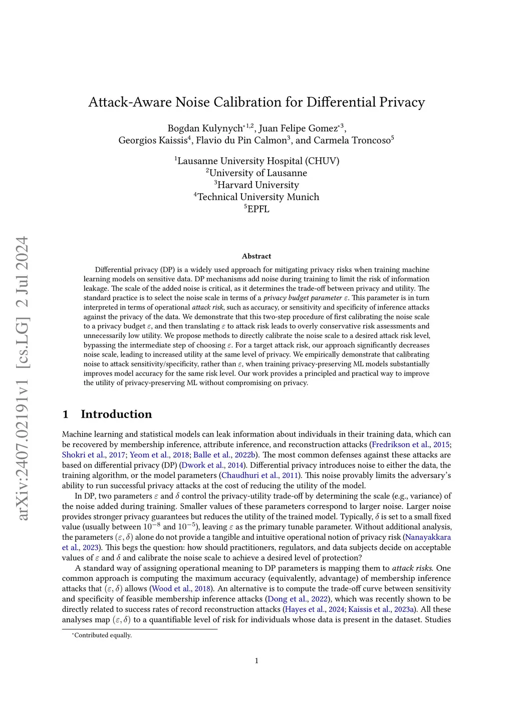 Differential privacy (DP) is a widely used approach for mitigating privacy risks when training machine learning models on sensitive data. DP mechanisms add noise during training to limit the risk of information leakage. The scale of the added noise is critical, as it determines the trade-off between privacy and utility. The standard practice is to select the noise scale in terms of a privacy budget parameter . This parameter is in turn interpreted in terms of operational attack risk, such as accuracy, or sensitivity and specificity of inference attacks against the privacy of the data. We demonstrate that this two-step procedure of first calibrating the noise scale to a privacy budget , and then translating to attack risk leads to overly conservative risk assessments and unnecessarily low utility. We propose methods to directly calibrate the noise scale to a desired attack risk level, bypassing the intermediate step of choosing . For a target attack risk, our approach significantly decreases noise scale, leading to increased utility at the same level of privacy. We empirically demonstrate that calibrating noise to attack sensitivity/specificity, rather than , when training privacy-preserving ML models substantially improves model accuracy for the same risk level. Our work provides a principled and practical way to improve the utility of privacy-preserving ML without compromising on privacy.