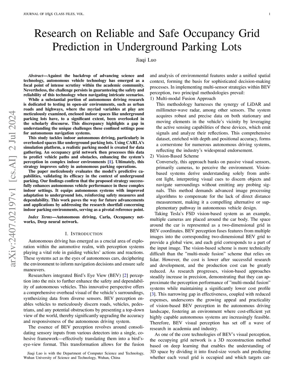 Against the backdrop of advancing science and technology, autonomous vehicle technology has emerged as a focal point of intense scrutiny within the academic community. Nevertheless, the challenge persists in guaranteeing the safety and reliability of this technology when navigating intricate scenarios. While a substantial portion of autonomous driving research is dedicated to testing in open-air environments, such as urban roads and highways, where the myriad variables at play are meticulously examined, enclosed indoor spaces like underground parking lots have, to a significant extent, been overlooked in the scholarly discourse. This discrepancy highlights a gap in derstanding the unique challenges these confined settings pose for autonomous navigation systems. This study tackles indoor autonomous driving, particularly in overlooked spaces like underground parking lots. Using CARLA's simulation platform, a realistic parking model is created for data gathering. An occupancy grid network then processes this data to predict vehicle paths and obstacles, enhancing the system's perception in complex indoor environments. Ultimately, this strategy improves safety in autonomous parking operations. The paper meticulously evaluates the model's predictive capabilities, validating its efficacy in the context of underground parking. Our findings confirm that the proposed strategy successfully enhances autonomous vehicle performance in these complex indoor settings. It equips autonomous systems with improved adaptation to underground lots, reinforcing safety measures and dependability. This work paves the way for future advancements and applications by addressing the research shortfall concerning indoor parking environments, serving as a pivotal reference point.