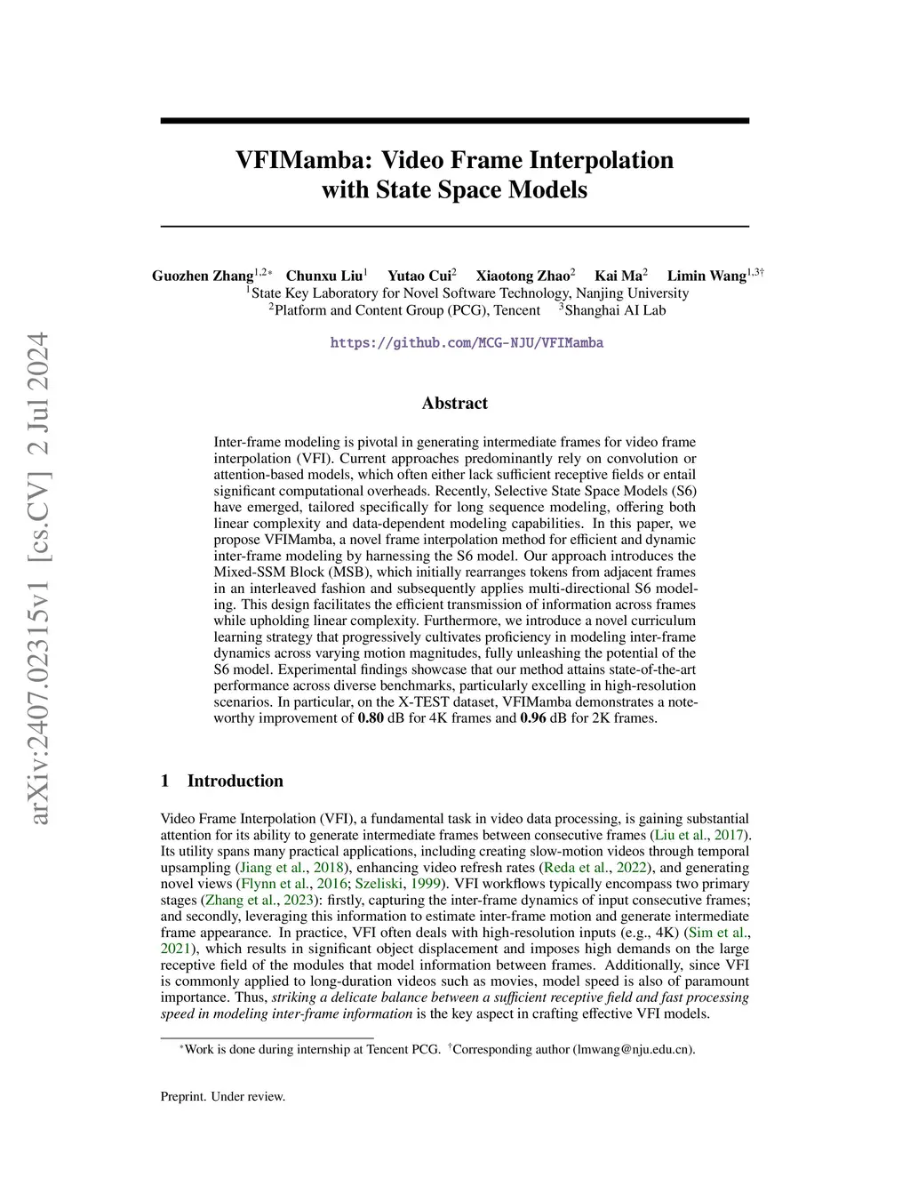 VFIMamba: Video Frame Interpolation with State Space Models