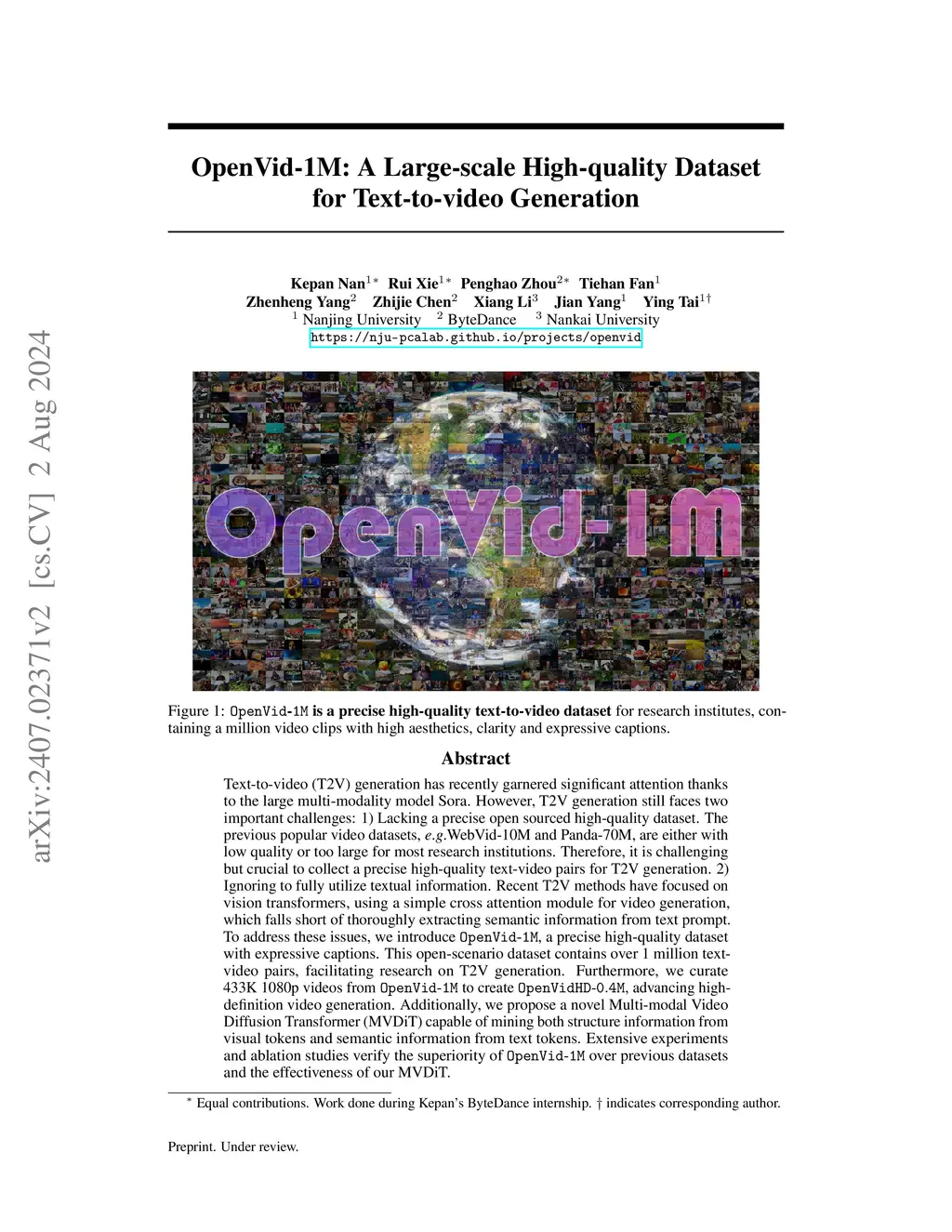 OpenVid-1M: A Large-Scale High-Quality Dataset for Text-to-video Generation