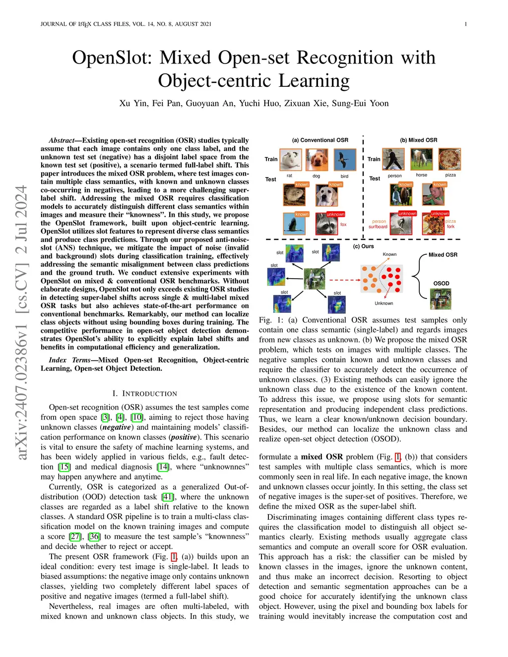 Existing open-set recognition (OSR) studies typically assume that each image contains only one class label, with the unknown test set (negative) having a disjoint label space from the known test set (positive), a scenario referred to as full-label shift. This paper introduces the mixed OSR problem, where test images contain multiple class semantics, with both known and unknown classes co-occurring in the negatives, leading to a more complex super-label shift that better reflects real-world scenarios. To tackle this challenge, we propose the OpenSlot framework, based on object-centric learning, which uses slot features to represent diverse class semantics and generate class predictions. The proposed anti-noise slot (ANS) technique helps mitigate the impact of noise (invalid or background) slots during classification training, addressing the semantic misalignment between class predictions and ground truth. We evaluate OpenSlot on both mixed and conventional OSR benchmarks. Without elaborate designs, our method not only excels existing approaches in detecting super-label shifts across OSR tasks, but also achieves state-of-the-art performance on conventional benchmarks. Meanwhile, OpenSlot can localize class objects without using bounding boxes during training, demonstrating competitive performance in open-set object detection and potential for generalization.