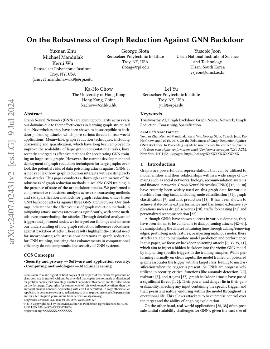 On the Robustness of Graph Reduction Against GNN Backdoor