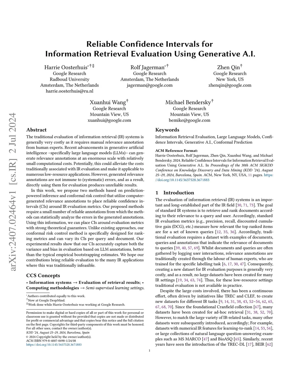 Reliable Confidence Intervals for Information Retrieval Evaluation Using