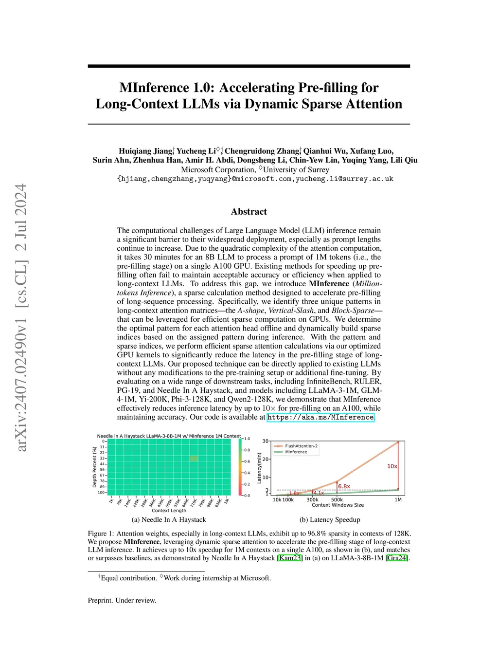 MInference 1.0: Accelerating Pre-filling for Long-Context LLMs via