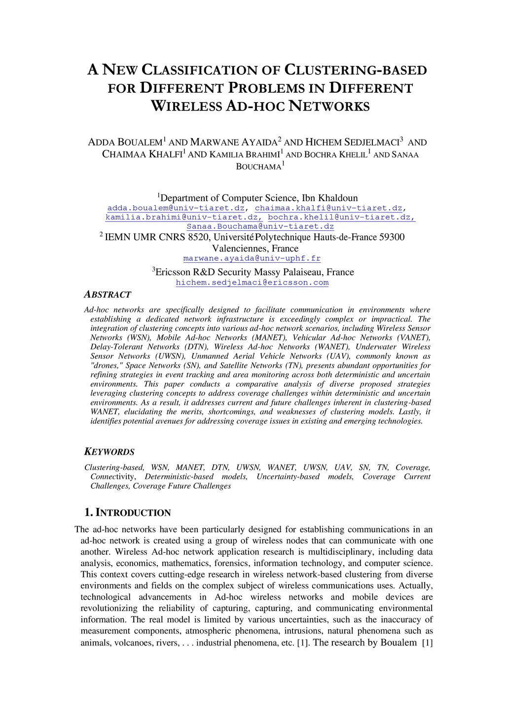 Ad-hoc networks are specifically designed to facilitate communication in environments where establishing a dedicated network infrastructure is exceedingly complex or impractical. The integration of clustering concepts into various ad-hoc network scenarios, including Wireless Sensor Networks (WSN), Mobile Ad-hoc Networks (MANET), Vehicular Ad-hoc Networks (VANET), Delay-Tolerant Networks (DTN), Wireless Ad-hoc Networks (WANET), Underwater Wireless Sensor Networks (UWSN), Unmanned Aerial Vehicle Networks (UAV), commonly known as "drones," Space Networks (SN), and Satellite Networks (TN), presents abundant opportunities for refining strategies in event tracking and area monitoring across both deterministic and uncertain environments. This paper conducts a comparative analysis of diverse proposed strategies leveraging clustering concepts to address coverage challenges within deterministic and uncertain environments. As a result, it addresses current and future challenges inherent in clustering-based WANET, elucidating the merits, shortcomings, and weaknesses of clustering models. Lastly, it identifies potential avenues for addressing coverage issues in existing and emerging technologies.