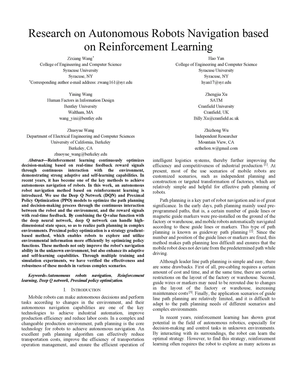 Research on Autonomous Robots Navigation based on Reinforcement Learning