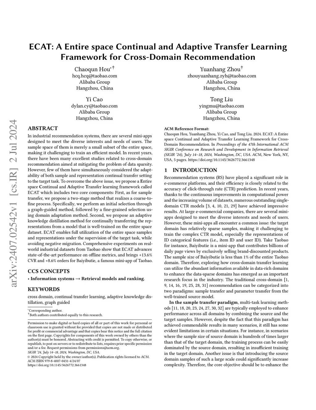 ECAT: A Entire space Continual and Adaptive Transfer Learning Framework