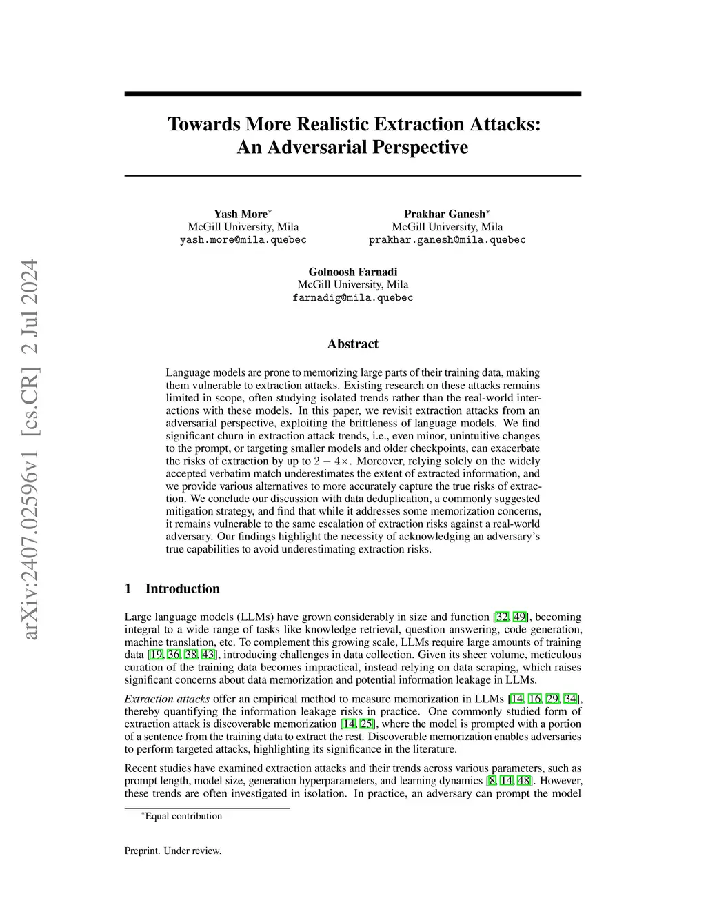 Towards More Realistic Extraction Attacks: An Adversarial Perspective