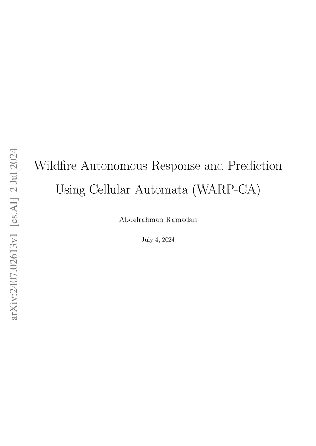 Wildfires pose a severe challenge to ecosystems and human settlements, exacerbated by climate change and environmental factors. Traditional wildfire modeling, while useful, often fails to adapt to the rapid dynamics of such events. This report introduces the (Wildfire Autonomous Response and Prediction Using Cellular Automata) WARP-CA model, a novel approach that integrates terrain generation using Perlin noise with the dynamism of Cellular Automata (CA) to simulate wildfire spread. We explore the potential of Multi-Agent Reinforcement Learning (MARL) to manage wildfires by simulating autonomous agents, such as UAVs and UGVs, within a collaborative framework. Our methodology combines world simulation techniques and investigates emergent behaviors in MARL, focusing on efficient wildfire suppression and considering critical environmental factors like wind patterns and terrain features.