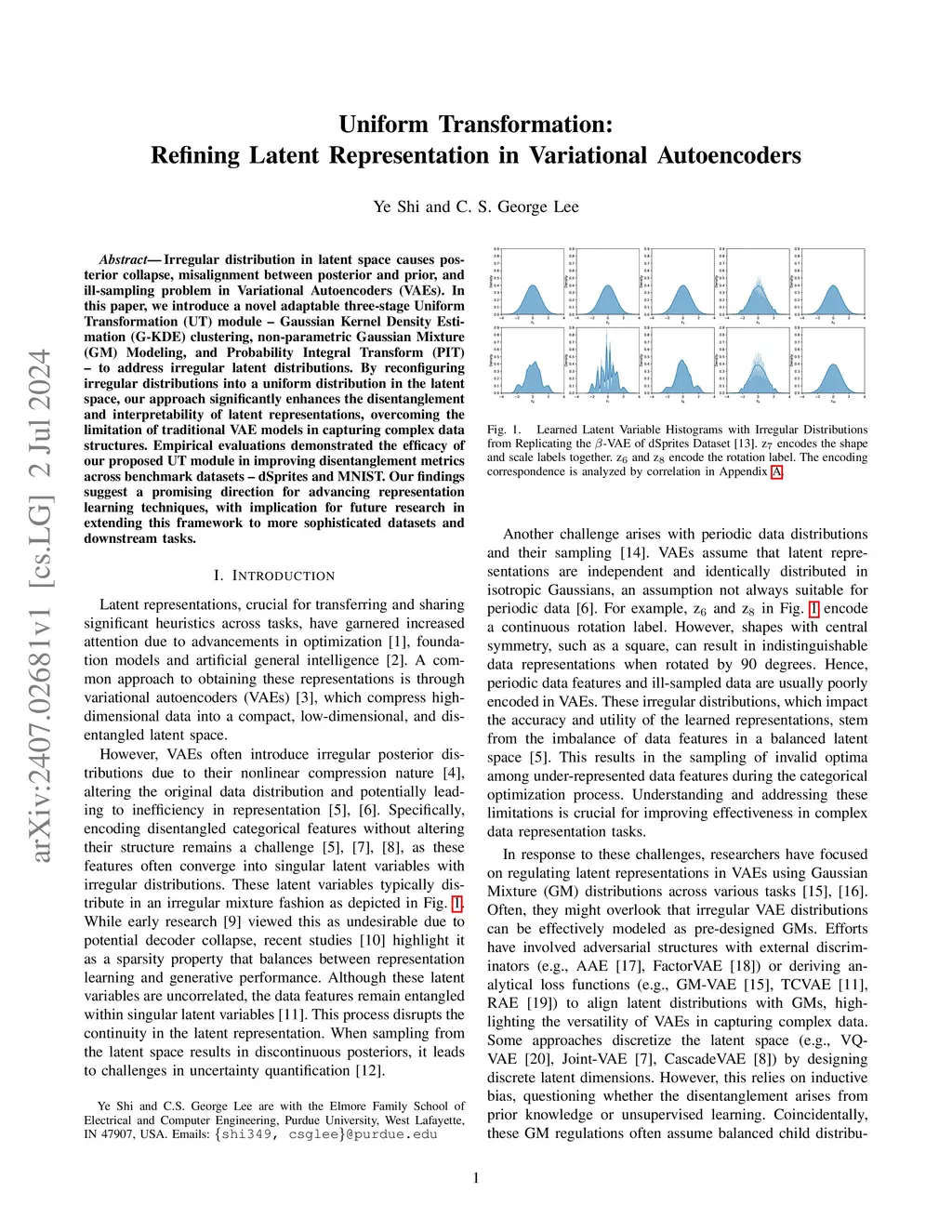 Irregular distribution in latent space causes posterior collapse, misalignment between posterior and prior, and ill-sampling problem in Variational Autoencoders (VAEs). In this paper, we introduce a novel adaptable three-stage Uniform Transformation (UT) module -- Gaussian Kernel Density Estimation (G-KDE) clustering, non-parametric Gaussian Mixture (GM) Modeling, and Probability Integral Transform (PIT) -- to address irregular latent distributions. By reconfiguring irregular distributions into a uniform distribution in the latent space, our approach significantly enhances the disentanglement and interpretability of latent representations, overcoming the limitation of traditional VAE models in capturing complex data structures. Empirical evaluations demonstrated the efficacy of our proposed UT module in improving disentanglement metrics across benchmark datasets -- dSprites and MNIST. Our findings suggest a promising direction for advancing representation learning techniques, with implication for future research in extending this framework to more sophisticated datasets and downstream tasks.