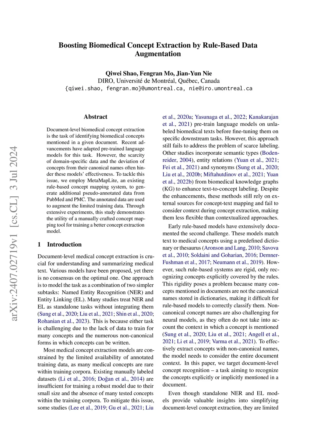Document-level biomedical concept extraction is the task of identifying biomedical concepts mentioned in a given document. Recent advancements have adapted pre-trained language models for this task. However, the scarcity of domain-specific data and the deviation of concepts from their canonical names often hinder these models' effectiveness. To tackle this issue, we employ MetaMapLite, an existing rule-based concept mapping system, to generate additional pseudo-annotated data from PubMed and PMC. The annotated data are used to augment the limited training data. Through extensive experiments, this study demonstrates the utility of a manually crafted concept mapping tool for training a better concept extraction model.