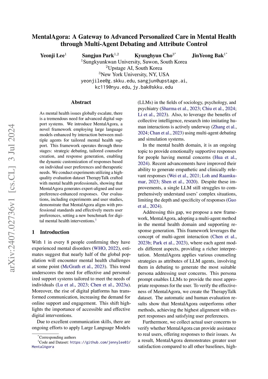 MentalAgora: A Gateway to Advanced Personalized Care in Mental Health