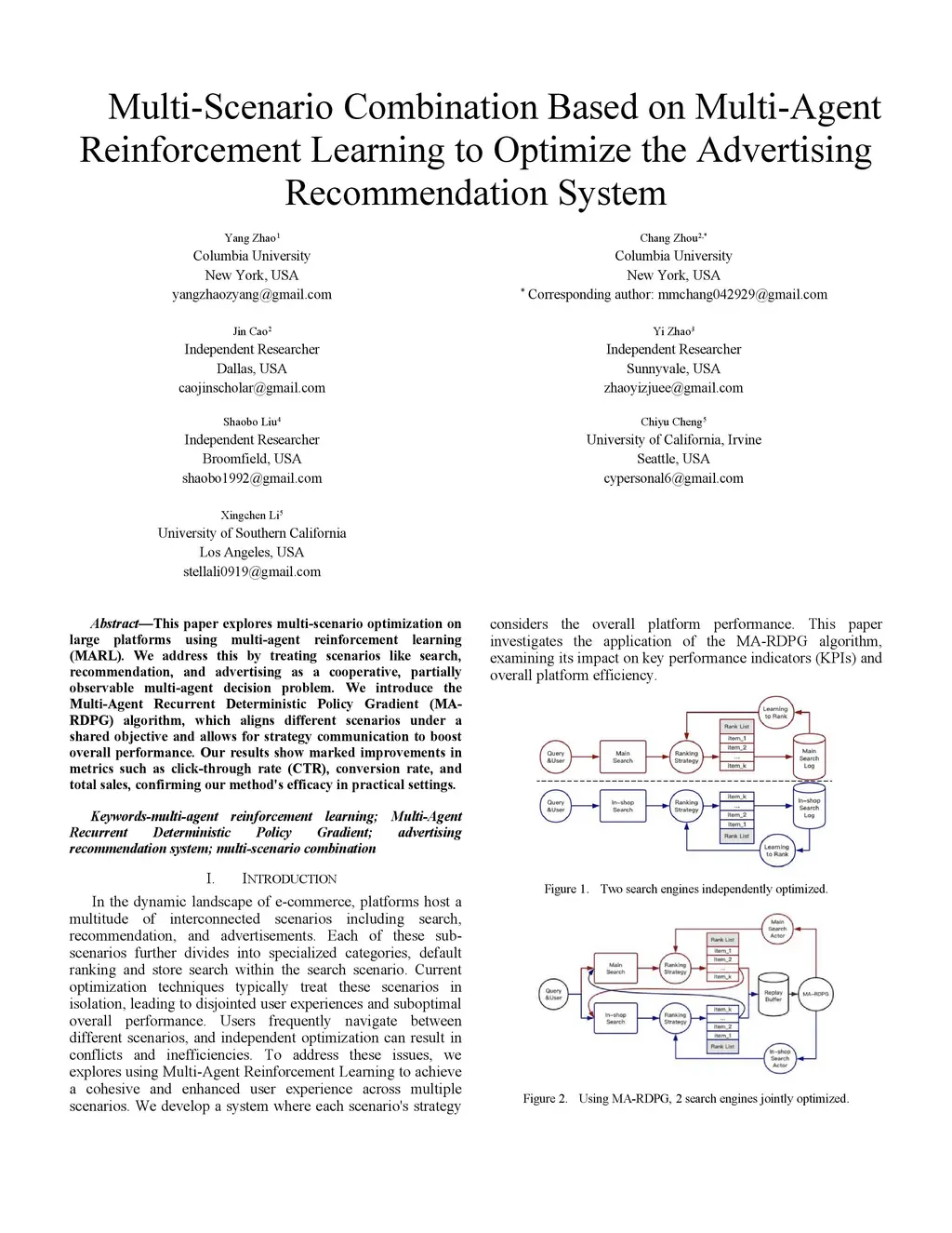 This paper explores multi-scenario optimization on large platforms using multi-agent reinforcement learning (MARL). We address this by treating scenarios like search, recommendation, and advertising as a cooperative, partially observable multi-agent decision problem. We introduce the Multi-Agent Recurrent Deterministic Policy Gradient (MARDPG) algorithm, which aligns different scenarios under a shared objective and allows for strategy communication to boost overall performance. Our results show marked improvements in metrics such as click-through rate (CTR), conversion rate, and total sales, confirming our method's efficacy in practical settings.